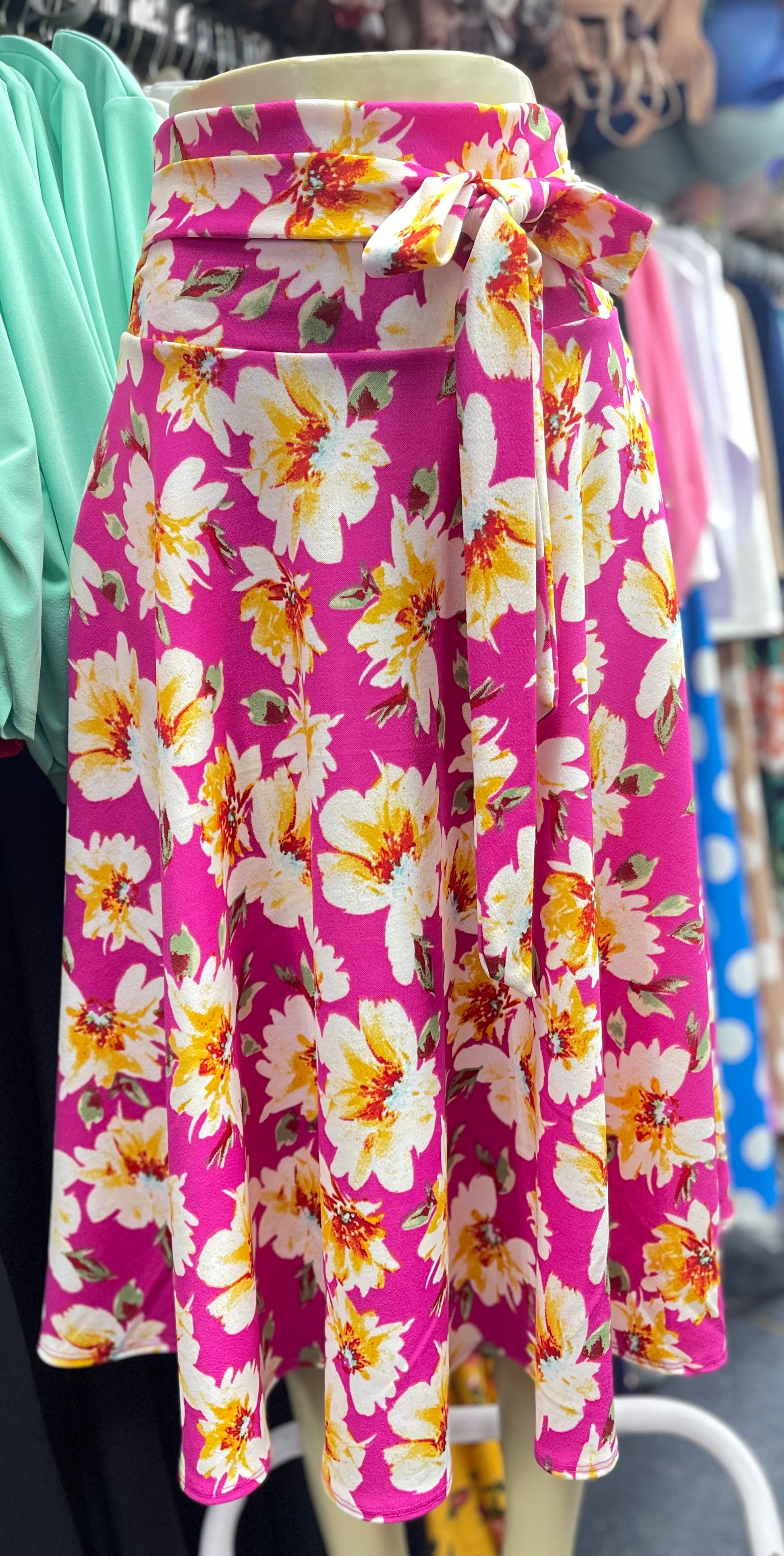 Midi floral skirt hot pink