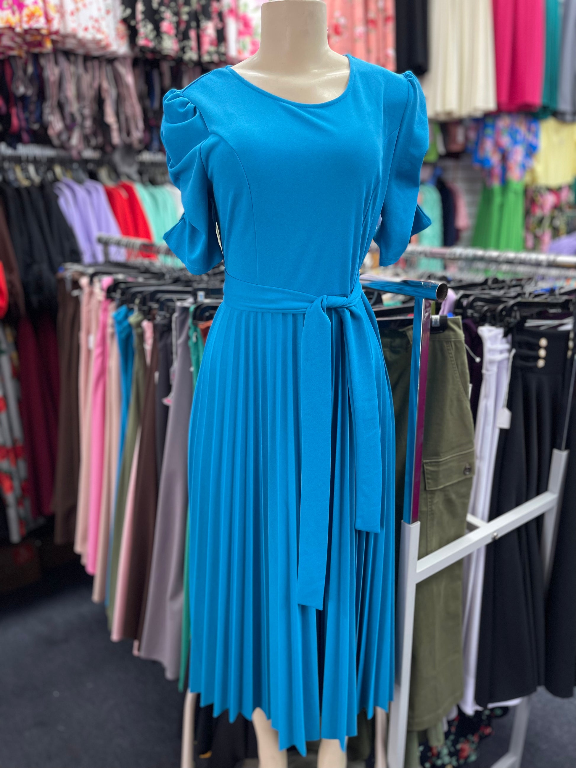 Olivia Pleated Dress Blue